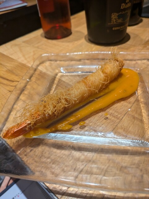 海老のカダイフ包みは、周りの衣に紛れない海老の存在感があり、海老のぷりぷりと衣のサクサクがよかったです