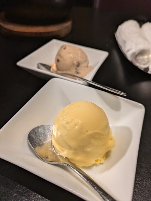 デザートとして、さつまいものアイスクリームと栗のアイスクリームを頂きました✨