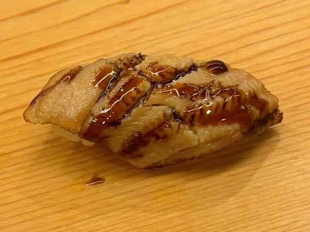 煮穴子を炙っているので、表面はパリッと香ばしく中はふわっと柔らかくて絶品です。