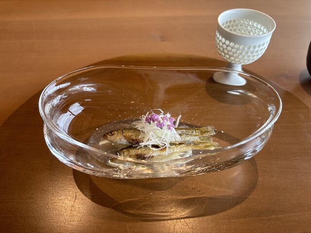 臭みのないほろ苦い鮎を山椒の香りをつけた酢でさっぱりと頂きました。