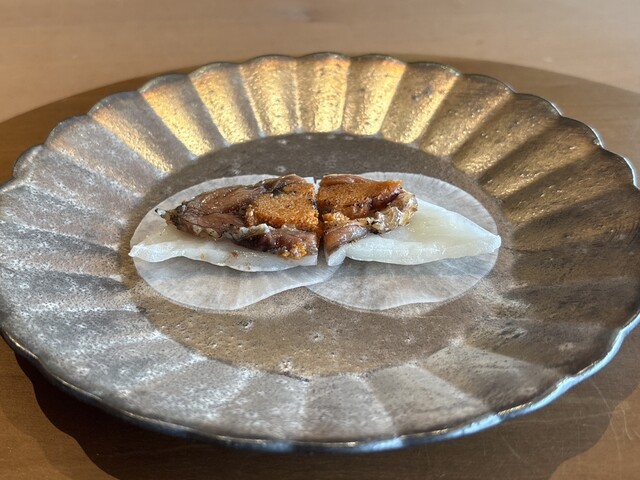弾力のあるコリコリした食感を想像してたのですが、昆布締めの様にねっとりした食感で旨味が口に広が李不思議。