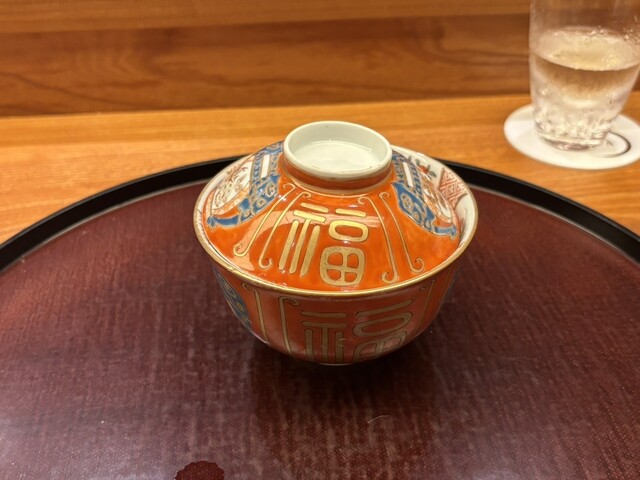 セットされた杯を手に取り昆布出汁を頂くことから料理が始まります。