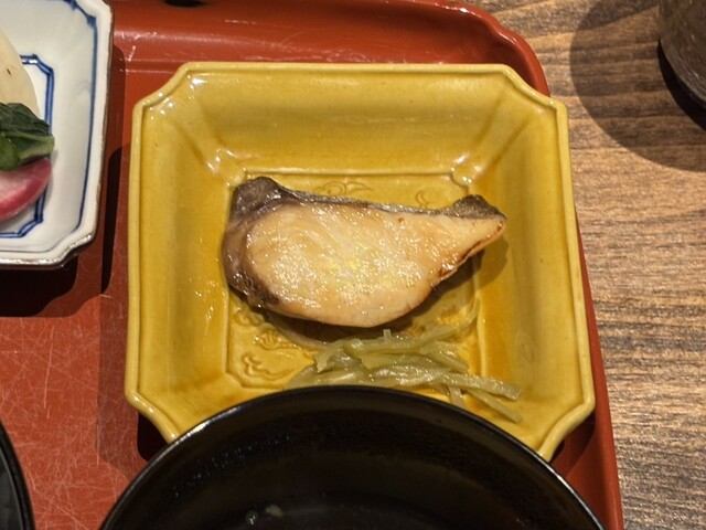 ほんのりと漂う柑橘の爽やかな香りと酸味を感じる鰆の幽庵焼きはもちろん美味しかったけど、蓮根のきんぴらの食感と風味がドストライクでご飯が進む(笑)