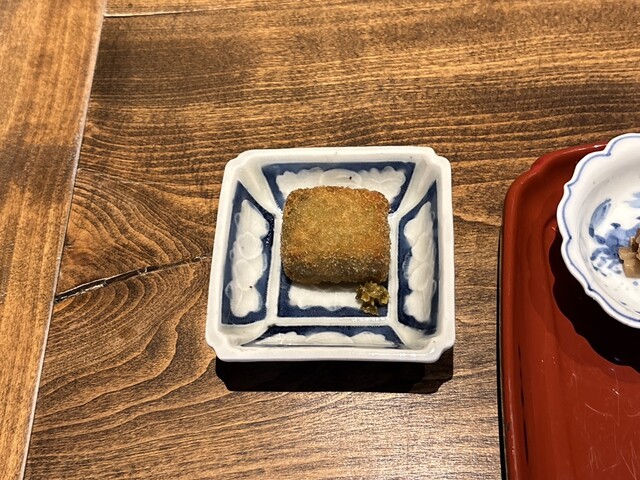 こちらもお粥なだけあって優しい味付けですが、酒粕の香りと辛味控えめ自家製のわさび漬けがアクセントになっててお酒の肴にもなる。