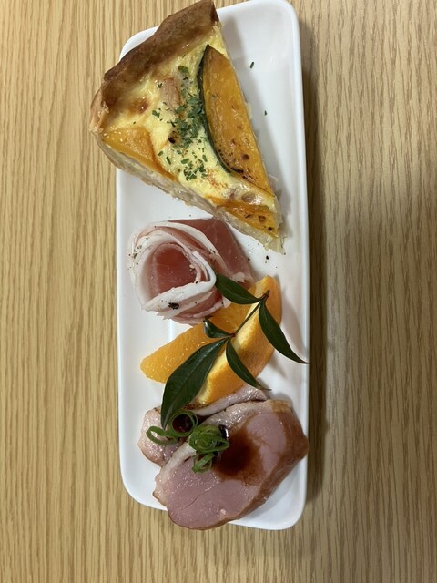 かぼちゃのキッシュと生ハム、鴨の前菜