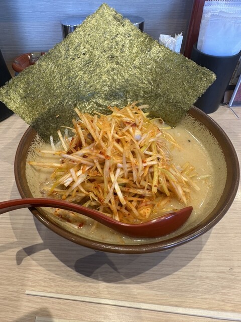 海苔のデカさに目が行く。具沢山でネギはピリ辛、肉味噌は若干少な目な印象。
