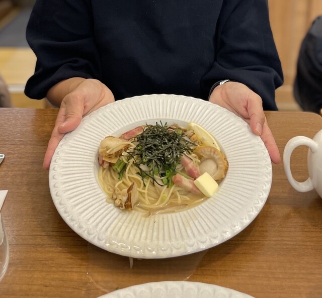 パンケーキの焼き加減、甘さ、生地のふんわり感、めちゃくちゃ好みでした!!!私はふわふわのスフレみたいなパンケーキは食べた気がしなくて、あまり好きではないのですが、こちらのパンケーキは満足感もあるけど、ふわふわで、最高でした❗️セットで付いてくる牛乳もひとくち飲んで、娘とのけぞりました‼️さすが牛乳メーカー✨パスタはパンケーキほどの感動はありませんでしたが、おおきなホタテが入っていて美味しかったです。東京でも出店されているようで、また行きたいです。