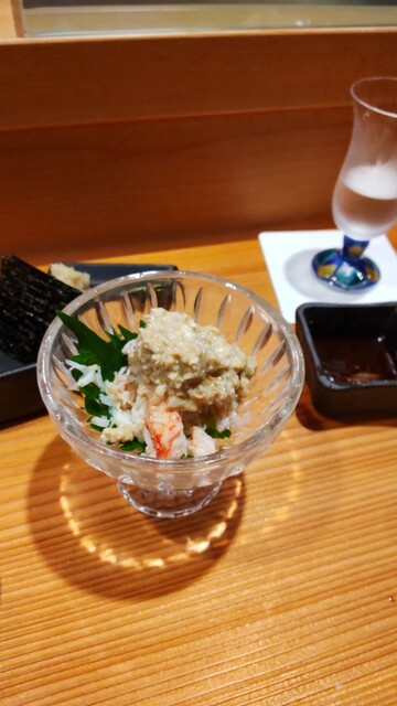 特に鯵の握りがハンパなく美味しい。そしてアテの雲丹に海苔巻くうまいやつ。