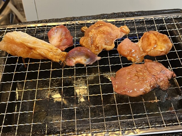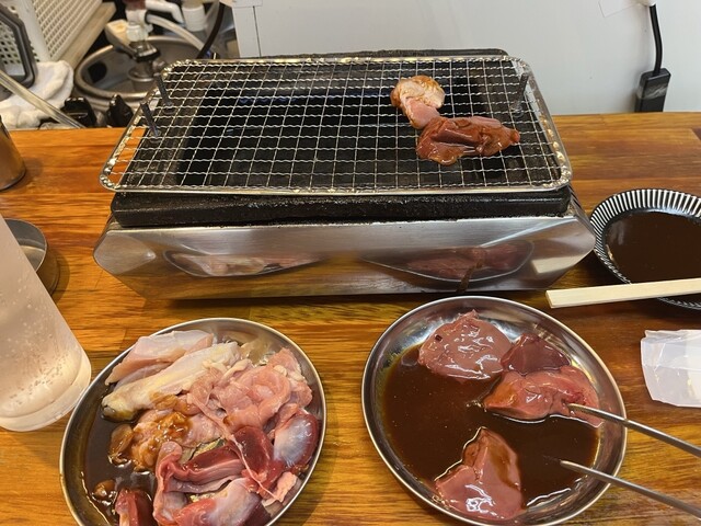 秋の空気になってきた 過ごしやすい、今日はミニ乗り鉄 ランチは新今宮駅で下車 マルフクさんへ行こう ありゃま、満席 火曜日、昼過ぎだと言うのに人気ですね では!焼き鳥ランチにしましょう おっ、すぐに入れます では、4種盛合せとレバー 濃い目の酎ハイ 盛合せはヤゲン軟骨、皮、ひね鶏かな?砂肝 焼けるのを待ちいただきます あっと言う間に酎ハイお代わり さて、ライス中と山芋、らっきょうのハーフのキムチを追加 うん!お腹いっぱい レバーの焼き加減がなかなか難しいや 焼き過ぎるとアカンな半生ぐらいがちょうど好みかも ご馳走様でした♪ 複数で来て色々食べたいな いつもご馳走様です♪