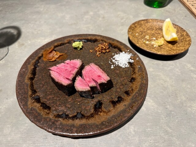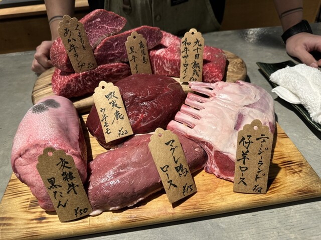 いいお店。雰囲気と接客はとても良い。器もこだわりあり気持ちも上がる。お肉はグラム単位の量り売りで5種類のお肉から個別に選ぶスタイル。ジビエの鹿肉もあり歯応えしっかりの味わいあるお肉でウィスキーが合うと思う。日本酒がそんなにないけど炭焼メインで全部美味い。