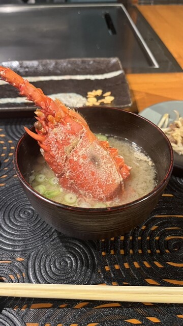 伊勢海老の頭の方は味噌汁にしていただけました。