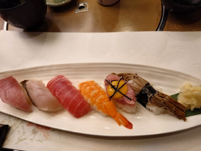 大トロ入りにぎり寿司(大トロは勿論、全て美味かったのですがエリンギ寿司の食感が斬新)