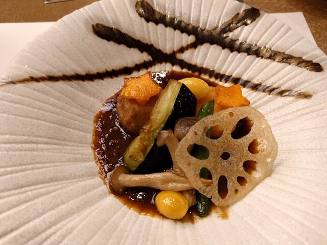 秋野菜の吹き寄せ(野菜とソースの絡みが絶妙で美味)