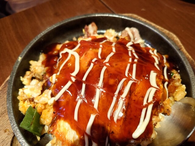 お好み焼きはソバでイカと野菜Wとソバうどんのちゃんぽんでキムチとイカ(両方ともいかが入ってるのは?)お腹いっぱいでもカープ角ハイを飲みながら間食