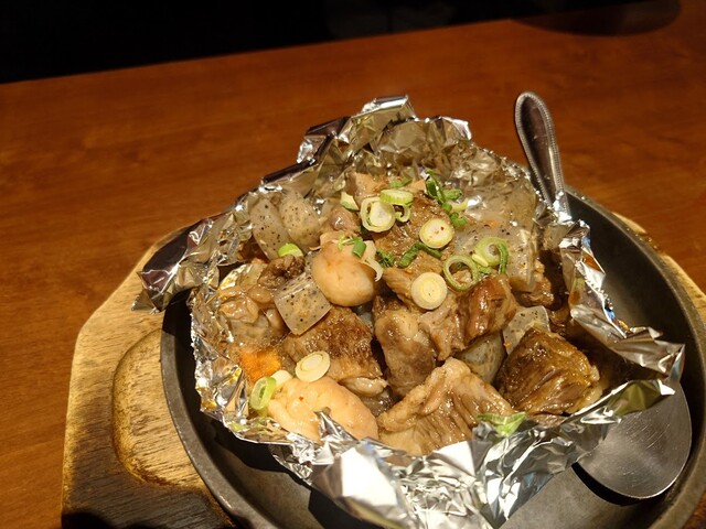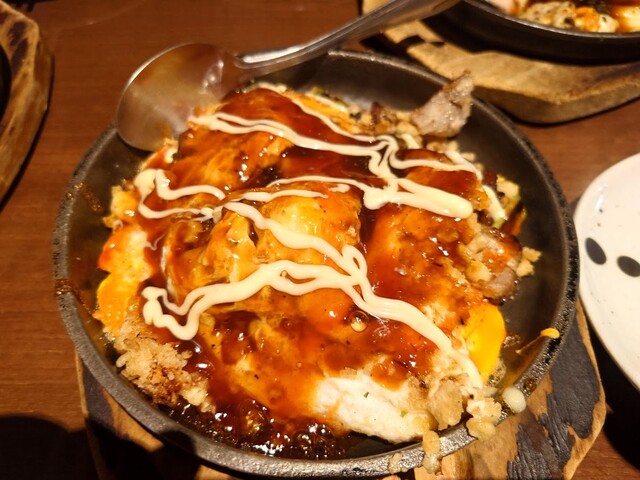 選べる鉄板焼きは4人なので4種類とん平焼き、ちーたま明太子、山芋ステーキ入り、ねぎ焼き