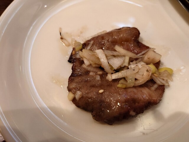 ガーリックねぎ牛タン塩(1298円)片面焼いてねぎを巻く感じで蒸し焼き美味し