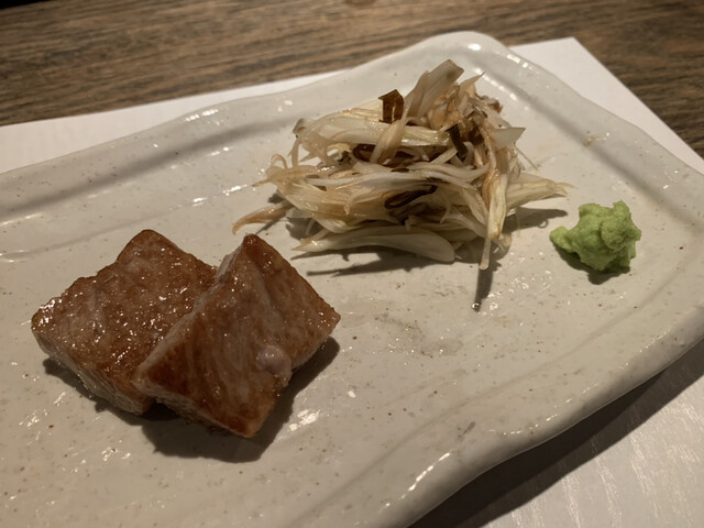 今日は茅舎の山田穂で牛タタキと本マグロの中トロをいただきました。