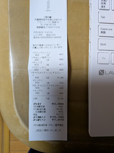 パンを10こ買って3000円ちょっとは、安くはないですね。でもおいしいです。