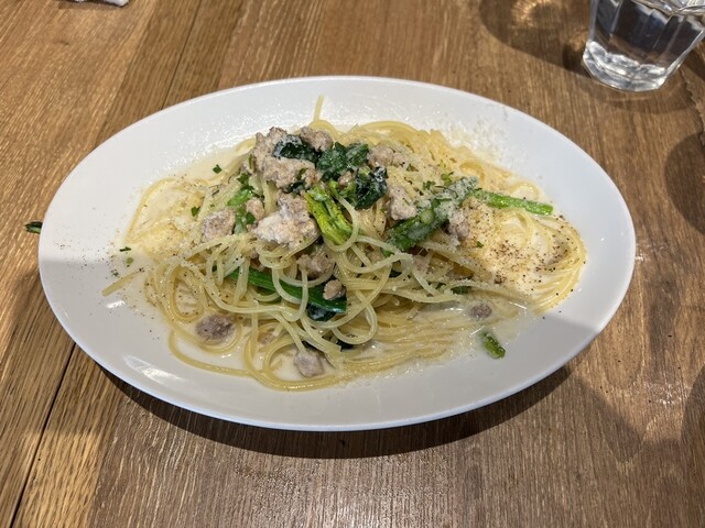 ピッツァは定番のマルゲリータでそれにクリームソース系のなんたらパスタ…