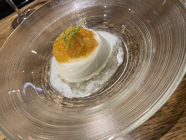 締めのデザートはイタリアンなパンナコッタのようなものでおじちゃん大好きです。