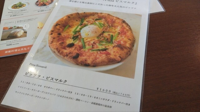 本日のピッツァは定番「マルゲリータ」1,200円、地元・仁尾のレモンとパンツェッタ、モッツァレラなどを載せてホワイトソースで仕上げた「仁尾リモーネ」1,500円、生ハムたっぷりの「生ハムのピッツァ」1,500円の3種。