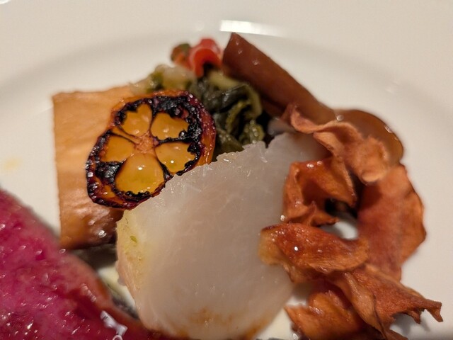 前菜には「吉田牧場のモッツァレラと苺、生ハム」、「岡山産無菌豚 田舎風テリーヌ」を。