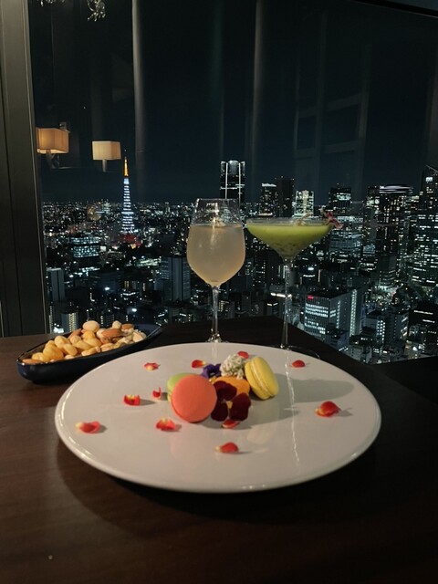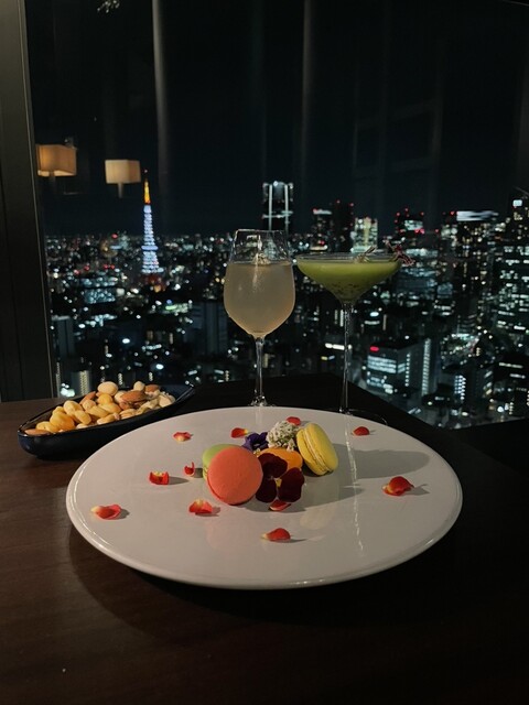 汐留駅から徒歩3分ほどにある『Bar & Lounge MAJESTIC』さんに行ってきました!地上215mの高層階から東京タワーと夜景が見えるとっても雰囲気の良いBARでした✨️カクテルはバーカウンターで作られるオリジナルで、マカロンも可愛くて美味しかった♡窓際のお席は東京タワーが正面に見えて絶景です✨️1人¥4,000で確約できます。暗めの店内と美しい夜景が、記念日デートにオススメなので、ぜひ利用してみてください♥