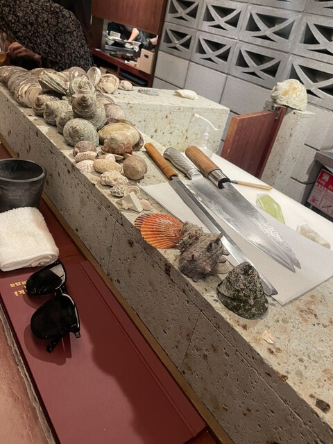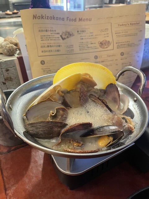 渋谷駅から徒歩5分ほどにある『なきざかな 渋谷』さんへ行ってきました。貝料理が豊富な居酒屋で、カウンター、テーブル、個室があり、今回はカウンター席に案内していただきました。生きた貝のいる水槽もあって、新鮮さも抜群。本日のおすすめの貝が盛られた桶で説明してくれます✨️まずは、お通しと、1杯目のスパークリングワインを頂きました。大根や貝、油揚げなどが入った煮物が美味しい。次に、高海老のユッケを。シャリの上にのった海老と卵が絡んでとても美味しかったです。卵が濃厚で美味しいのでかなりおすすめ♡本気の貝出汁巻きが到着。貝汁が染みた出汁巻きが体に優しくて美味しい。お箸を入れたときのジュワッが最高でした。さらに、サーモンのレアカツも頂きました。ジェノバソースと柚子もついていて、味変して食べられます。柔らかいサーモンとサクサクの衣がマッチしてました✨️気になっていた貝のせいろ飯も注文。ご飯に味がしみてこれも美味しい。ボリュームもちょうど良かったです。このあたりでワインをもう一杯。頼みたかった地中海ワイン白を頂きました。少し酸味がありつつ爽やかで美味しかったです♡さて、お待ちかねの『貝風呂』が登場。たっぷりの貝を火にかけて沸騰したところで頂きました。塩バターの味にしたのですが、そのままでしっかり美味しくて、お酒も進みます。これはぜひ頼んで欲しいです✨️追加でサザエのつぼ焼きも。お酒好きは欲しくなる1品。最後に、チーズケーキとティラミスも注文しました。デザートまでしっかり美味しくて満足感のあるディナーになりました。