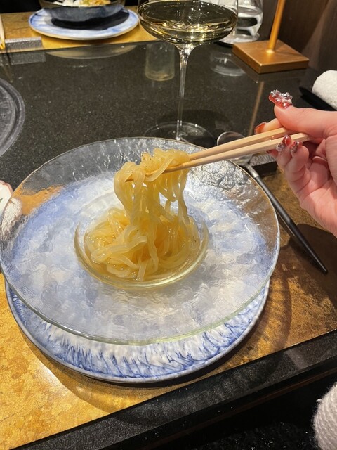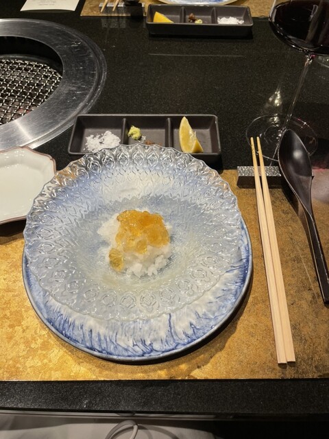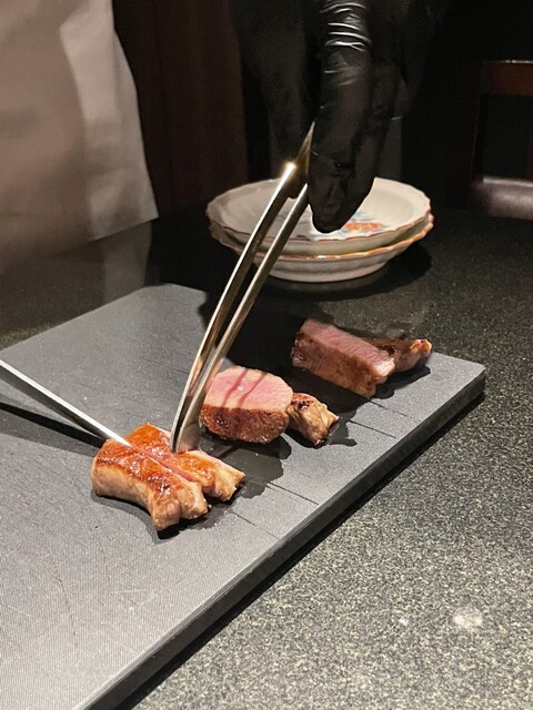 銀座駅から徒歩4分ほどにある『牛印 銀座店』さんへ行ってきました✨なんと、百名店にも選出された実力派のお店。ラグジュアリーな雰囲気の店内に、個室フルアテンドなのでデートや記念日にピッタリでした!外観と内装の重厚感から楽しみな気持ちも高まります。この日は参の牛コースを頂きました。生産者にこだわっており、メニュー表の裏に生産者さんのお名前が記載してあります。最初に圧巻の肉塊を見せていただき、詳細の説明もしてくださいました♡前菜のスープから素材の味を感じる濃厚さ、しっかり味の染みた肉寿司と、ワクワクが止まりません…♡プロの焼き師さんが焼いてくれるので、お肉の焼き加減もバツグン✨️特に、上ミノのブルゴーニュ焼きが美味しくてお気に入りでした!名物のシャトーブリアンステーキサンドは、見た目の迫力と絶品なお味がリピしたくなる逸品でした。ご飯ものとデザートは選べるので、2人でシェアするのがおすすめ✨今回のご飯ものは、冷麺orカレー、デザートはピスタチオのテリーヌorコーヒープリンでした!お肉が美味しくてワインも進みました…!お料理はもちろん、接客も素晴らしかったのでデートや記念日にぜひ使ってみてください!