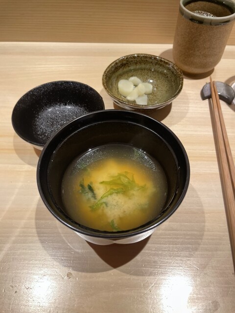 お鮨の後は、お味噌汁と甘味の焼きくず餅を頂きました。コース全体に抑揚があって、飽きないメニュー組立も素晴らしかったです。これから流行りそうなお鮨屋さんなので、記念日やご褒美など、特別な日にぜひ利用してみてください✨️