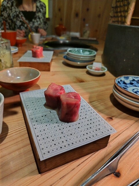 焼肉をコースでいただきました。最初にセンマイをいただきました。初っ端から度肝を抜かれるぐらい美味しかったです。新鮮なのはもちろんですが、味付けも最高でした。このあとはもう何を食べても美味しかったです。あと箸休めの白菜の漬物が本当にちょうど良かった。おかわりも自由なのも、良き。
