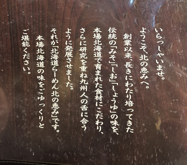 メニューに書いてある通り、本場北海道の味噌ラーメンを九州の人の舌に合うように研究されて出来上がったこだわりの味。最高です。
