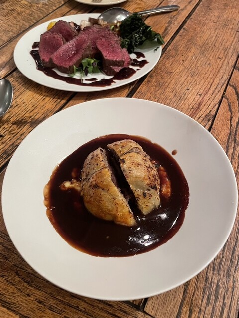 ・牛ホホ肉の赤ワイン煮込みとキノコのパイ包み焼き
