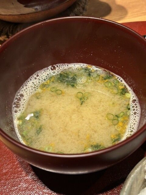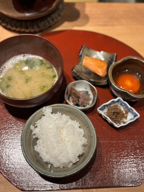 ■土鍋銀しゃりと伊勢海老の味噌汁 焼き魚と珍味、漬け卵黄を添えて