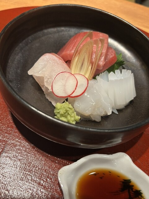 天然鮪、中とろ、熟成真鯛、アオリイカ、伊勢海老と豪華!