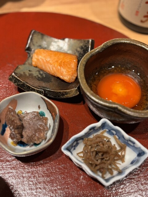 漬け卵黄、ちりめんじゃこ、牛の時雨煮、鮭などのお供も充実。