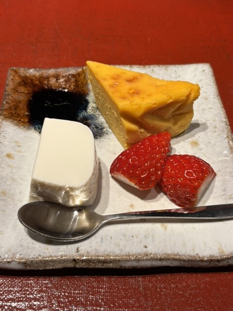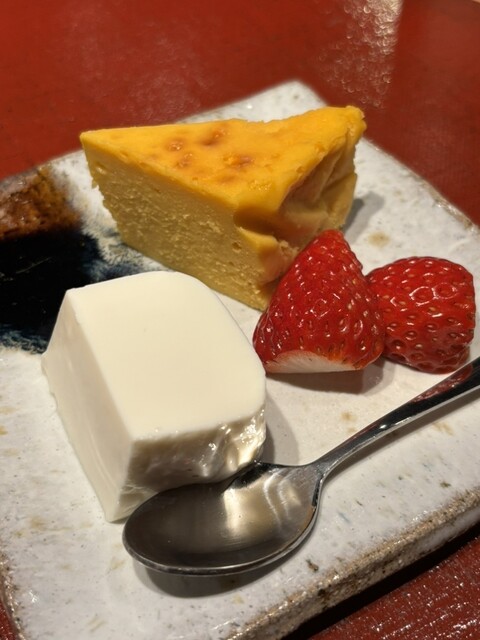 パンナコッタ、カボチャのチーズケーキ、いちご