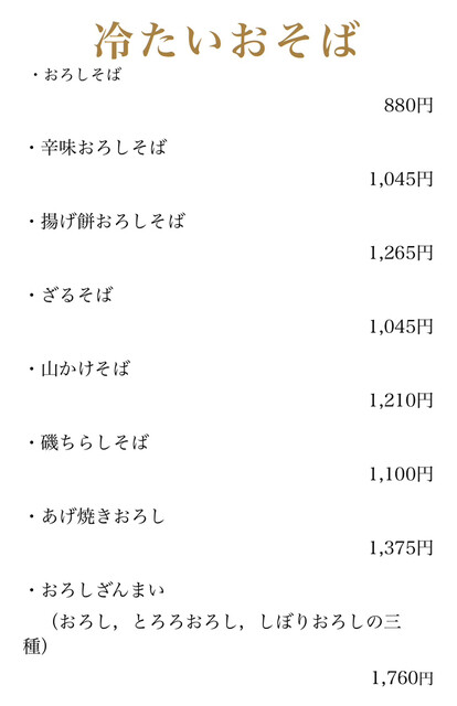 お蕎麦は十割太打ち、十割細打ち、暖かい蕎麦用の二八細打ちが選べます。
