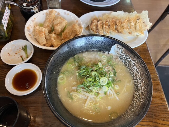 個人的には大好きなお店。とんこつラーメンです。私は、トッピングで、にんにくをたくさん入れて食べるのが好きですね。ただ、ここはラーメンがうまいというのもありますが、唐揚げも美味しいです。是非一度食べてみてください。