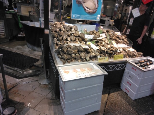 海鮮丼に満足できなかった私は魚屋さんでその場でいただける岩牡蠣に釘付けになりました