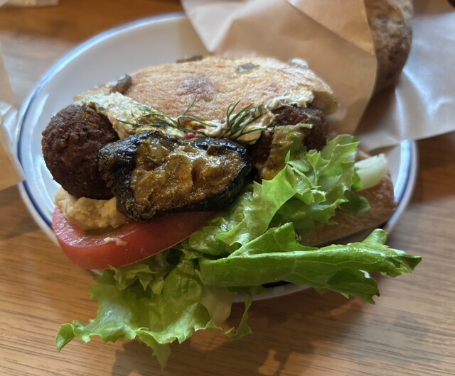 イートインで食べた、ファラフェルサンドは野菜たっぷりで肉団子とひよこ豆が挟んでありボリューム満点でいろんな食感が楽しめました。