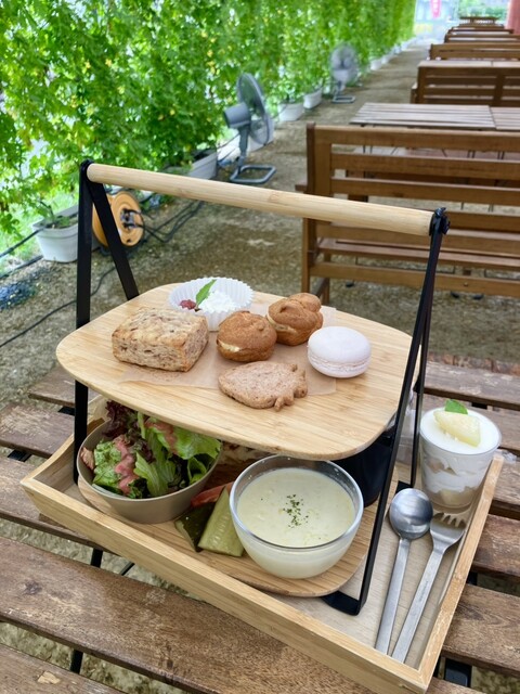 スイーツだけでなく、キッシュスープなど食事系も頂けるのが嬉しい。