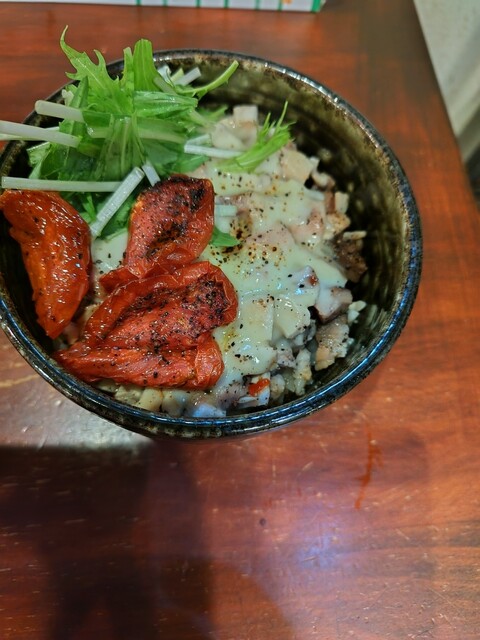 ロース、鶏むねを刻み入れたチーズトマト丼400円