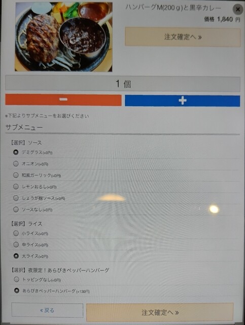 夜限定で、あらびきペッパーハンバーグ+130円