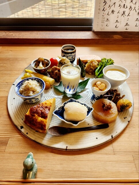 定番の蕎麦粥、鍋焼き玉子、手作り豆腐