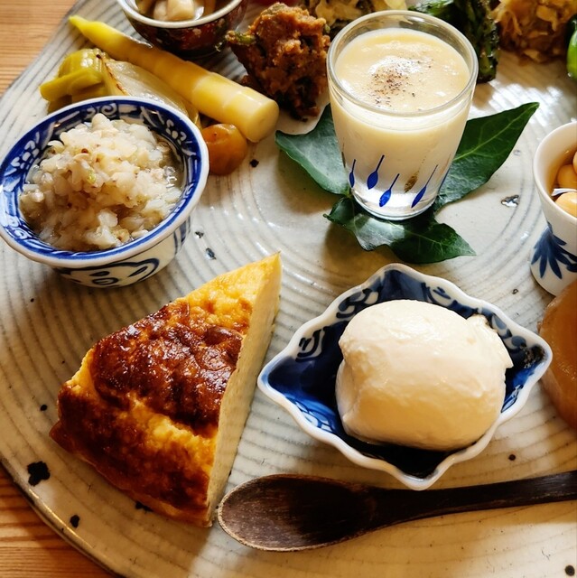 栗入り蕎麦粥・鍋焼き玉子・茗荷のピクルス…