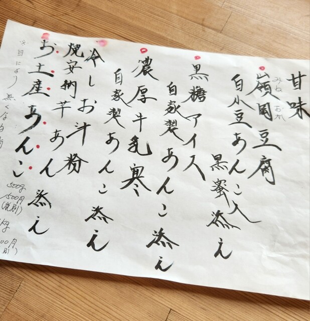本日の甘味から選びました、峰岡豆腐・白小豆あんこに黒蜜添え