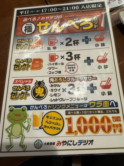 ♦︎ 店名 : 大衆酒場 みやにしテツオ