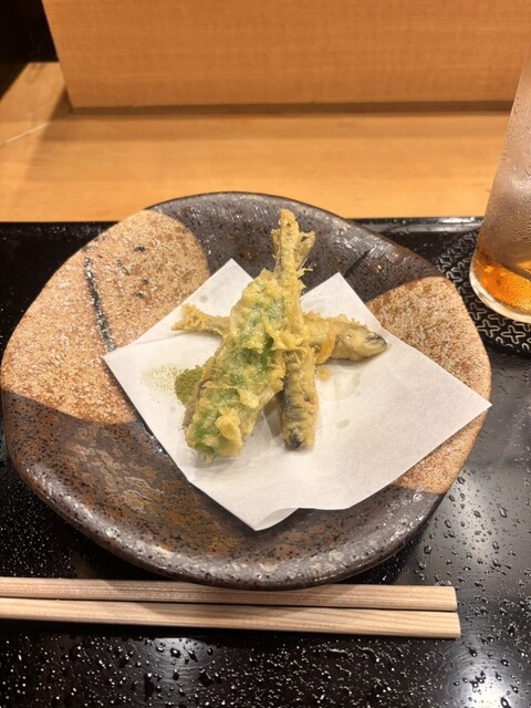 ◯稚鮎の天ぷら ししとう 抹茶塩