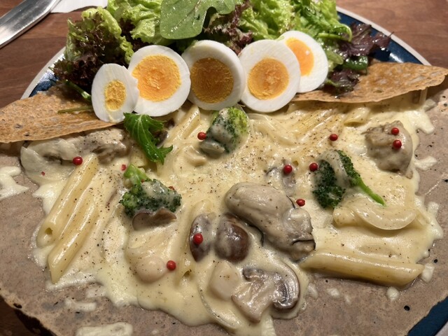 ここが西船橋?と思うほど、センスの良いお店の雰囲気でした。牡蠣のクリームのガレットのコースをお願いしました。スープもメインもデザートも美味しくいただきました。お店の方も感じが良くて、お会計の後、お見送りまでしてくださいました。次はパンを予約して買って来たいと思います。ご馳走さまでした。